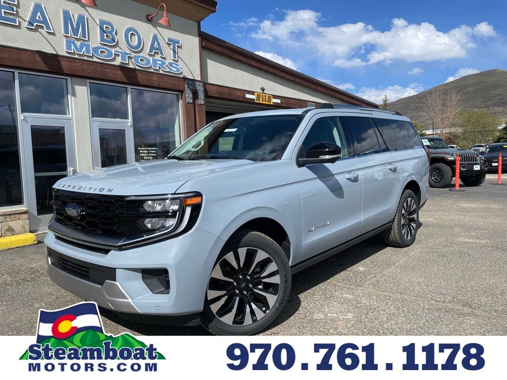 2026 Ford Expedition Max Platinum Glacier Gray Metallic Tri-Coat 4WD EcoBoost 3.5L V6 GTDi DOHC 24V Twin Turbocharged 10-Speed Automatic This vehicle is offered for sale at Steamboat Motors in Steamboat Springs, Colorado where you'll always get excellent customer service, best prices and superb selection. Call us at 970-879-8880 or stop in. We look forward to helping you! Recent Arrival!